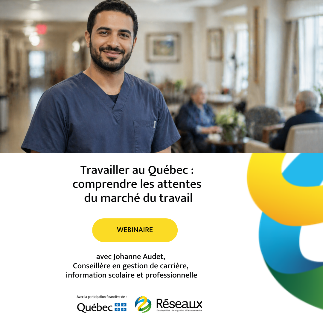 Activité portant sur les attentes du marché du travail québécois et les bonnes pratiques en matière de recherche d’emploi et d’intégration professionnelle, incluant des éléments liés aux outils de candidature, aux processus de sélection, aux comportements professionnels attendus ainsi qu’aux droits et responsabilités en milieu de travail.